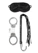 Explore each other's naughty side with this Lover's Fantasy Kit. Kit includes a leather whip, metal handcuffs with keys, and a FREE satin love mask.