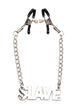 Make sure everyone knows their place when they wear these nipple clamps. The large, bold font spells out SLAVE and with a tug against the clamps you can put them in their place if they forget! The nickel free metal is perfect for sensitive skin and the shining metal looks great as a kinky accessory!