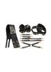 Full Hogtie Set: Includes 1 belt, 2 thigh cuffs, 2 wrist cuffs, 2 ankle cuffs, 2 garters, 2 cuff connectors, and 1 hog tie connector.