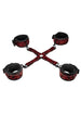 Getting on all fours" will have an exciting new meaning in your sex life! The OUCH! hogtie fulfills all your kinky dreams, and more! In any BDSM collection, a hogtie plays an important role and with this high-quality equipment you can have a go at it yourself. With their fashionable diamond pattern, these neoprene and faux-leather cuffs and cross really stand out from the crowd! The hogtie consists of 2 ankle cuffs, 2 handcuffs, and a cross" with four O-rings. The ankle cuffs are 39 cm (15.4") long and 5.5 cm (2.2") wide with 7 holes for size adjustment. The handcuffs are 36 cm (14.2") long and 5 cm (1.97") with 6 holes for size adjustment. The hogtie cross" has 4 lengths of 27.2 cm (10.7") each.