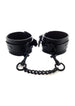 These dark and sexy looking leather wrist cuffs are soft and comfortable enough the be restrained for a lengthy time. The removable chain allows you to be chained up in various positions whilst being able to add attachments to the D-ring.