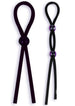 Slip one of these penis ties on and enjoy the ride of your life. Made of high-quality and hygienically-superior silicone, these rings are super stretchy and will adjust to accommodate most sizes. This two ring set features one tie for just the penis and another for the penis and testicles. The clear ball accents are used to adjust the sizes of these completely sturdy and flexible ties offering you long-lasting erections and helping to prolong ejaculation. phthalate-free. Available in Purple and Black.