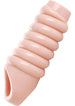 This erection enhancing sleeve is extra fat, with big ridges for incredible girth and plenty of sensation! The outer texture features large rolls, for intense stimulation with every thrust. The ball strap will help keep it in place, and the open ended design lets you feel more of your partner as you drive them wild with your new fatter dick! The walls are extra thick for a measurable girth increase, with separate holes for the cock and balls for comfort, stimulation, and security. The phthalate-free material is body safe, easily cleaned, and has enough firmness and slickness for easy insertion while remaining flexible.Measurements: