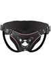 This vegan-friendly strap on harness has exciting pink accents and a low-cut designed to help draw their eye and keep their attention fixed on you. The belt is fully adjustable, with buckles at the hips and rear straps for a tight fit. The back is wide for more support, and lined with soft fabric for comfort. The front has an easy snap-in feature. Using one of the two included steel O-rings, you can add your favorite dildo, with multiple size options. The open-back design still leaves everything open for easy access.Measurements:
